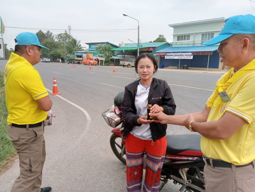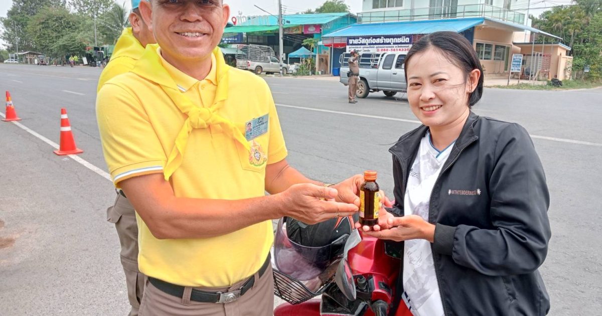 วันที่ 1ุ6 เม.ย. 67 เวลา 09.00 น. พ.ต.อ.ภาสกร มหาวงค์นันท์ ผกก.สภ.นากุง มอบหมายให้ ร.ต.อ.ทวีศักดิ์ เฉลิมแสน รอง สว.อก.สภ.นากุง พร้อมด้วยข้าราชการตำรวจจิตอาสา สภ.นากุง จำนวน ๒ นาย ได้บริการประชาชน ณ ศูนย์ปฏิบัติการร่วมป้องกันและลดอุบัติเหตุทางถนน เทศบาลบัวบาน โดยมอบเครื่องดื่มบำรุงกำลังและประชาสัมพันธ์การดำเนินการจิตอาสาในช่วงเทศกาลสงกรานต์ 2567 เน้นย้ำการรณรงค์เมาไม่ขับและผู้ขับขี่ที่มีอาการหลับในเพื่อเสริมสร้างความปลอดภัยและลดอุบัติเหตุทางถนนในการเดินทางของประชาชนซึ่งเป็นสาเหตุหลักของการเกิดอุบัติเหตุ