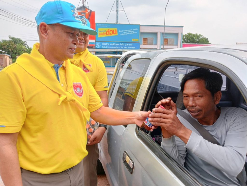 วันที่ 12 เม.ย.67 เวลา 11.00 น. พ.ต.อ.ภาสกร มหาวงค์นันท์ ผกก.สภ.นากุง มอบหมายให้ ข้าราชการตำรวจชุดจิตอาสา สภ.นากุง จำนวน 2 นาย ได้บริการประชาชน ณ ศูนย์ปฏิบัติการร่วมป้องกันและลดอุบัติเหตุทางถนน เทศบาลบัวบาน โดยมอบเครื่องดื่มบำรุงกำลังและประชาสัมพันธ์การดำเนินการจิตอาสาในช่วงเทศกาลสงกรานต์ 2567เน้นย้ำการรณรงค์เมาไม่ขับและผู้ขับขี่ที่มีอาการหลับในเพื่อเสริมสร้างความปลอดภัยและลดอุบัติเหตุทางถนนในการเดินทางของประชาชนซึ่งเป็นสาเหตุหลักของการเกิดอุบัติเหตุ