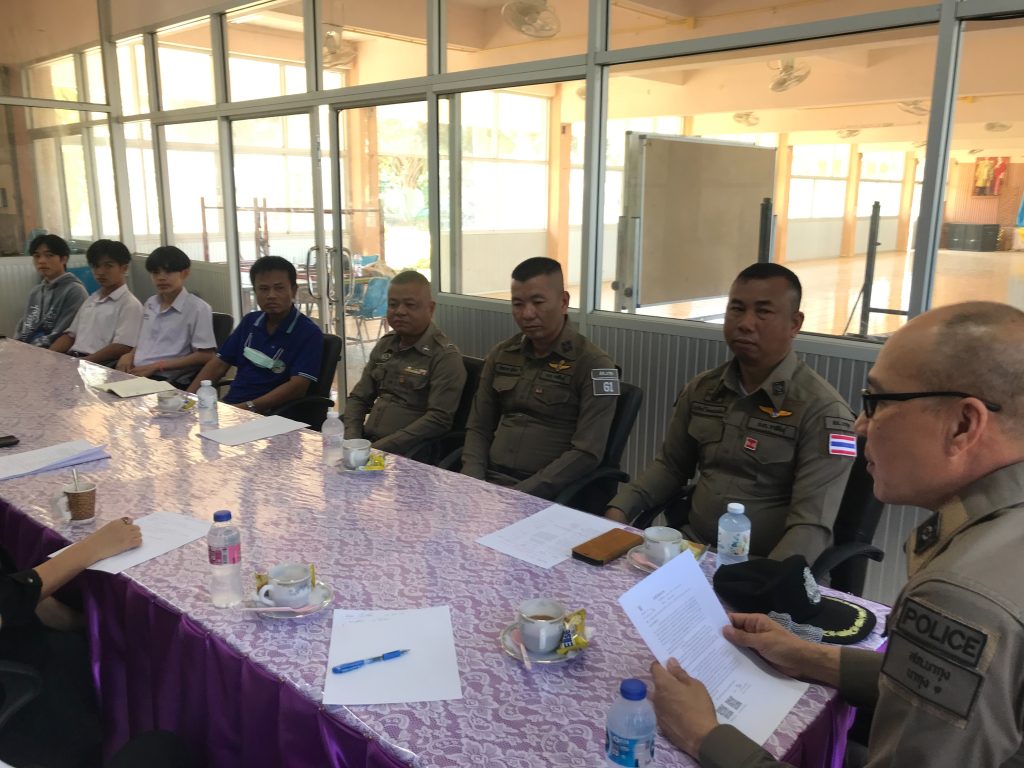 พร้อมด้วย พ.ต.ท.นวรัตน์ โคตรแสนเมือง สวป.สภ.นากุง , ร.ต.อ.ชัยณรงค์ ภูสีเขียว รอง สว.สส.ฯ , ร.ต.ต.ปริญญา ยิ่งยืน รอง สว(ป.)ฯ และ ด.ต.ศักดิ์ประสงค์ จันทะเจียง ผบ.หมู่(ป).ฯ ครูตำรวจแดร์ ( ตำรวจประสานโรงเรียน ) เข้าประชุมร่วมกับรองผู้อำนวยการโรงเรียนนาเชือกวิทยาคม , ครู 3 ฝ่าย (ครูฝ่ายปกครอง , ครูฝ่ายป้องกัน , ครูฝ่ายตรวจพิสูจน์ ) และตัวแทนนักเรียน เพื่อดำเนินการขับเคลื่อนตามโครงการ 1 ตำรวจ 1 โรงเรียน ณ โรงเรียนนาเชือกวิทยาคม ต.นาเชือก อ.ยางตลาด จ.กาฬสินธุ์ ประชาสัมพันธ์มาตรการป้องกันนักเรียนขับขี่รถเสียงดัง , ป้องกันการทะเลาะวิวาท , ป้องกันการเล่นพนันฯ , สื่อลามกอนาจาร , ร้านเกม , สถานบันเทิง , และปัจจัยเสี่ยงอื่นที่ตั้งอยู่ภายในและภายนอกโรงเรียน โดยเฉพาะปัญหายาเสพติดในโรงเรียน