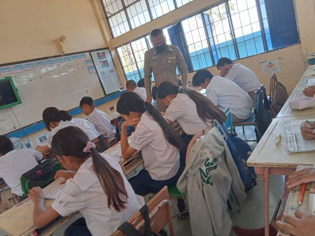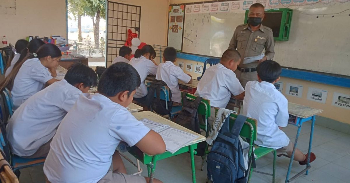 วันที่ 15 ก.พ. 2567 เวลา14.00-15.30 น.ภายใต้การอำนวยการโดย พ.ต.อ.ภาสกร มหาวงค์นันท์ ผกก.สภ.นากุง , พ.ต.ท.รณชัย พาภิรมย์ รอง ผกก.ป.สภ.นากุง , พ.ต.ท.นวรัตน์ โคตรแสนเมือง สวป. สภ.นากุง มอบหมายให้ ด.ต.ศักดิ์ประสงค์ จันทะเจียง ผบ.หมู่(ป)ฯ ครูตำรวจแดร์ เข้าทำการสอนตามโครงการการศึกษาเพื่อต่อต้านการใช้ยาเสพติดในเด็กนักเรียน (D.A.R.E.ประเทศไทย) ประจำภาคเรียนที่ 2/2566 นักเรียนชั้น ป.5 และ ป.6 และบรรยายให้ความรู้เพื่อป้องกันการล้วงละเมิดทางเพศในเด็กและเยาวชน (TITAC)โรงเรียนบ้านหนองแสง ต.เขาพระนอน อ.ยางตลาด จ.กาฬสินธุ์