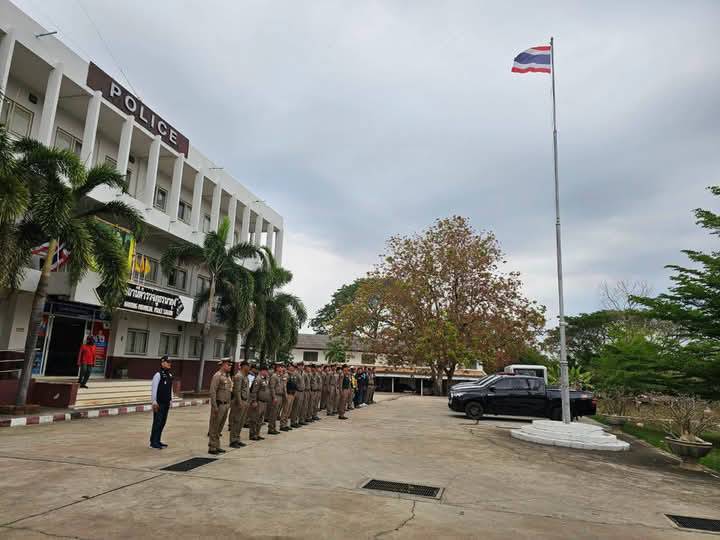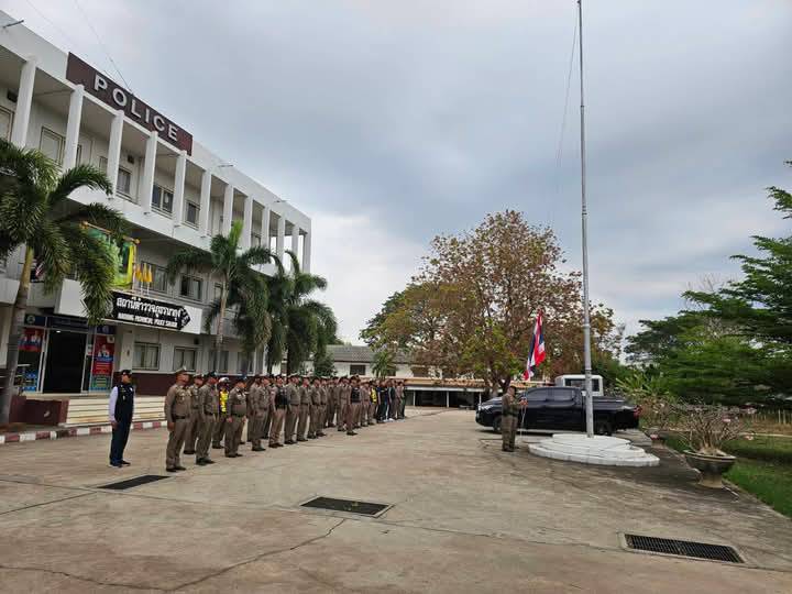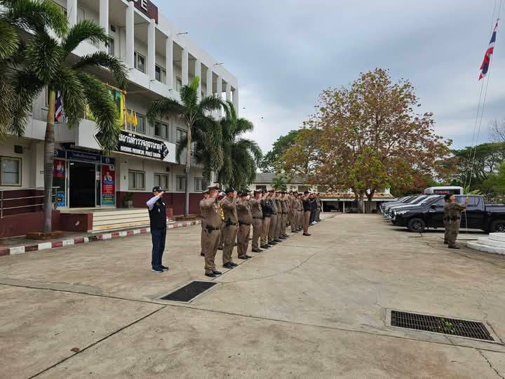 พ.ต.อ.โสณกุญช์ ทรัพย์สมบัติ ผกก.สภ.นากุง นำข้าราชการตำรวจ สภ.นากุงทำกิจกรรมแถวเคารพธงชาติ สวดมนต์ไหว้พระ กล่าวคำปฏิญาณ บทปลงใจ ท่องอุดมคติตำรวจ ประจำสัปดาห์