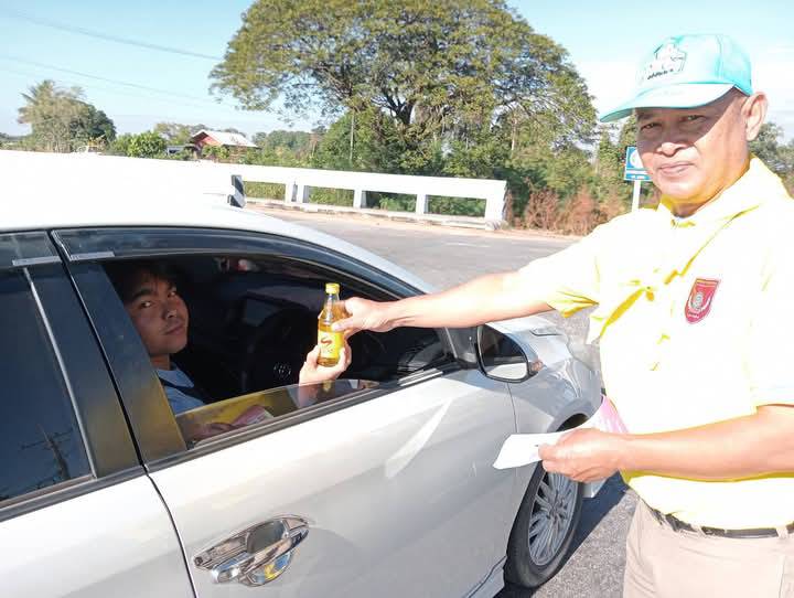 วันที่ 30 ธ.ค.67 เวลา 11.00 น.พ.ต.อ.ภาสกร มหาวงค์นันท์ ผกก.สภ.นากุง มอบหมายให้ ร.ต.อ.ทวีศักดิ์ เฉลิมแสน รอง สว.ธร.สภ.นากุง พร้อมด้วยข้าราชการตำรวจจิตอาสา เจ้าหน้าที่จิตอาสาจราจร สภ.นากุง รวมจำนวน 5 นาย รณรงค์การขับขี่เพื่อความปลอดภัย มอบเครื่องดื่มบำรุงกำลังให้กับประชาชนในช่วงเทศกาลปีใหม่ 2568 บริเวณ บ.โปร่งแค ม.8 ต.บัวบาน อ.ยางตลาด จ.กาฬสินธุ์