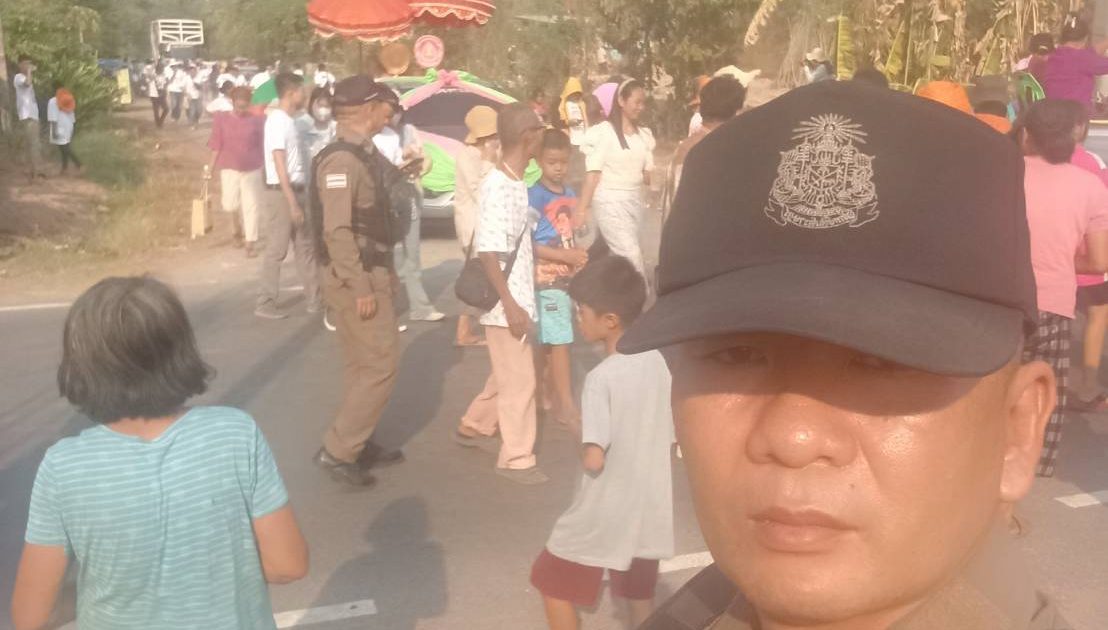 ร.ต.อ.ชัยณรงค์ ภูสีเขียว รอง สว.สส.สภ.นากุง ร้อยเวร 20 พร้อมด้วยสายตรวจรถยนต์ สายตรวจจราจร ตรวจรักษาความสงบและอำนวยความสะดวกด้านการจราจร บ้านโคกคำ ม.18 ขบวนแห่นาค งานอุปสมบท เพื่อป้องกันอุบัติเหตุทางถนน เหตุการณ์ทั่วไปปกติ