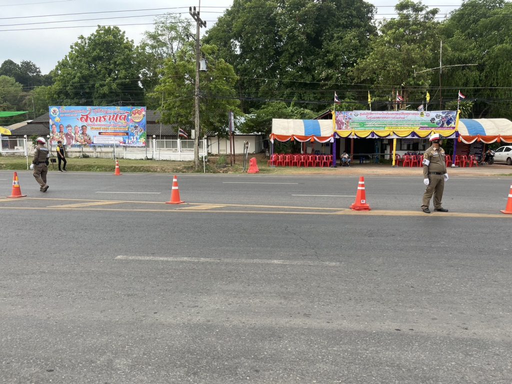 พ.ต.อ.ภาสกร มหาวงค์นันท์ ผกก.สภ.นากุง พ.ต.ท.รณชัย พาภิรมย์ รอง ผกก.ป.ฯ มอบหมายให้ ชุดจราจร ตรวจเตรียมความพร้อมช่องทางการจราจร เพื่อความสะดวกและความปลอดภัยให้กับผู้ใช้รถใช้ถนน และผู้ที่เดินทางมาเข้าร่วมกิจกรรมเปิดศูนย์อำนวยความปลอดภัยทางถนนห้วงเทศกาลสงกรานต์ 2567 ของเทศบาลบัวบาน หน้าจุดบริการประชาชนเทศบาลบัวบาน อ.ยางตลาด จ.กาฬสินธุ์