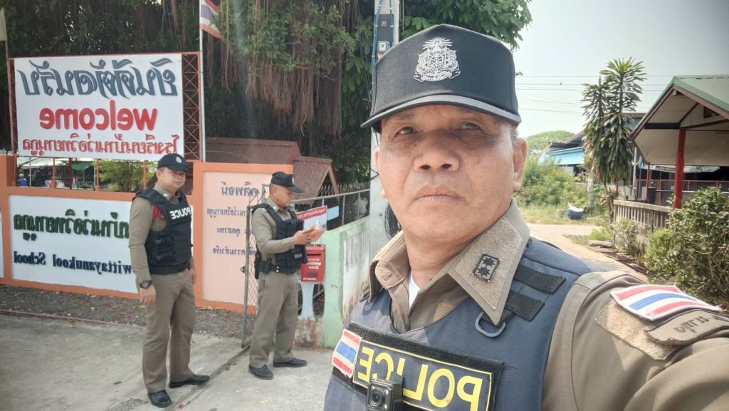 พร้อมด้วยสายตรวจรถยนต์ ร.ต.ท.ฤายศ รัตน์ตะบุดตา ร.ต.ต.สมเพชร ศรีปัญญา สถานศึกษา โรงเรียนบ้านเว่อวิทยานุกูล ต.บัวบาน อ.ยางตลาดฯ เหตุการณ์ทั่วไปปกติ