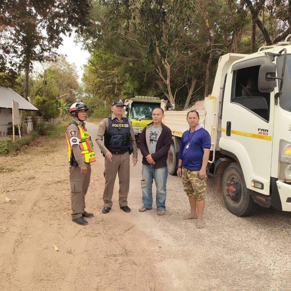 พร้อมด้วยสายตรวจรถยนต์ และสายตรวจจราจร ประชาสัมพันธ์ขอความร่วมมือผู้ประกอบการรถบรรทุกดิน ไม่ให้วิ่งผ่านถนนกลางหมู่บ้านโคกใหญ่ ต.บัวบาน อ.ยางตลาดฯ เนื่องจากเป็นชุมชนขนาดใหญ่และมีผู้ได้รับความเดือดร้อนผลกระทบจากฝุ่นละออง จึงขอความร่วมมือให้หลีกเลี่ยงไปใช้เส้นทางอื่นและให้ใช้ความระมัดระวังการฟุ้งกระจายของฝุ่นละอองดินที่บรรทุก คนขับรถบรรทุก 3 คันและเจ้าของรถแบ็กโค บ่อดิน