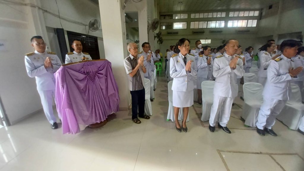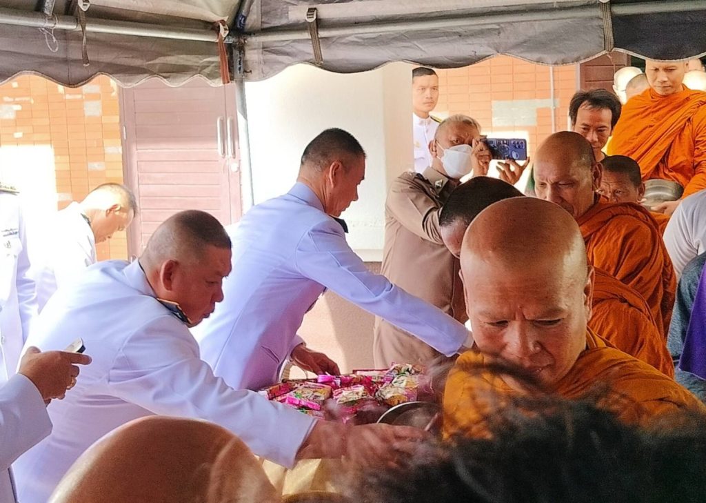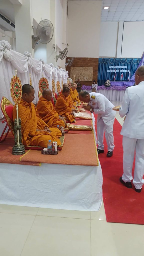 วันที่ ( 3 มิ.ย. 67 ) เวลา 07.00 น. พ.ต.อ.ภาสกร มหาวงค์นันท์ ผกก.สภ.นากุง มอบหมายให้ พ.ต.ท.รณชัย พาภิรมย์ รอง ผกก.ป.ฯ พร้อมด้วยข้าราชการตำรวจ สภ.นากุง สภ.โนนสูง สภ.ยางตลาด ร่วมกิจกรรม พิธีทำบุญตักบาตรถวายพระราชกุศล เนื่องในวันเฉลิมพระชนมพรรษา สมเด็จพระนางเจ้าฯ พระบรมราชินี ณ หอประชุมที่ว่าการอำเภอยางตลาด จังหวัดกาฬสินธุ์ โดยมีนายเอกรัตน์ มิสานายอำเภอยางตลาด เป็นประธานในพิธี