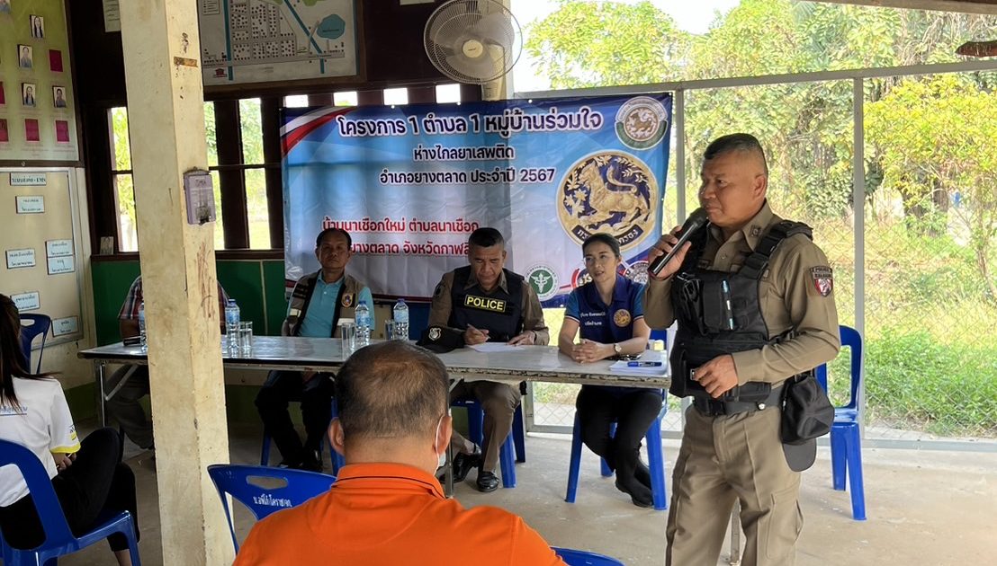 ร้อยเวร 20 พร้อมด้วยสายตรวจรถยนต์ ร่วมประชาคมกับปกครองอำเภอยางตลาด ตามโครงการ “โครงการ 1 ตำบล 1 หมู่บ้านร่วมใจห่างไกลยาเสพติด” ที่บ้านนาเชือกใหม่ หมู่ 11 ตำบลนาเชือก อ.ยางตลาด จ.กาฬสินธุ์