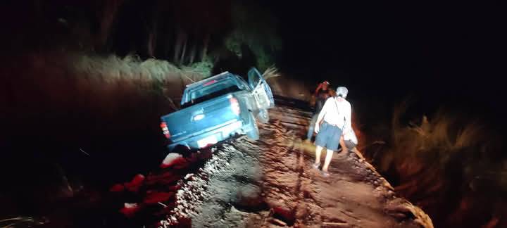 รถยนต์ ตกร่องน้ำป่าไหลหลาก ทางเข้าบ้านหนองกุงเก่า เยื้องทางเข้าบ้านตูม ต.บัวบาน อ.ยางตลาดฯ