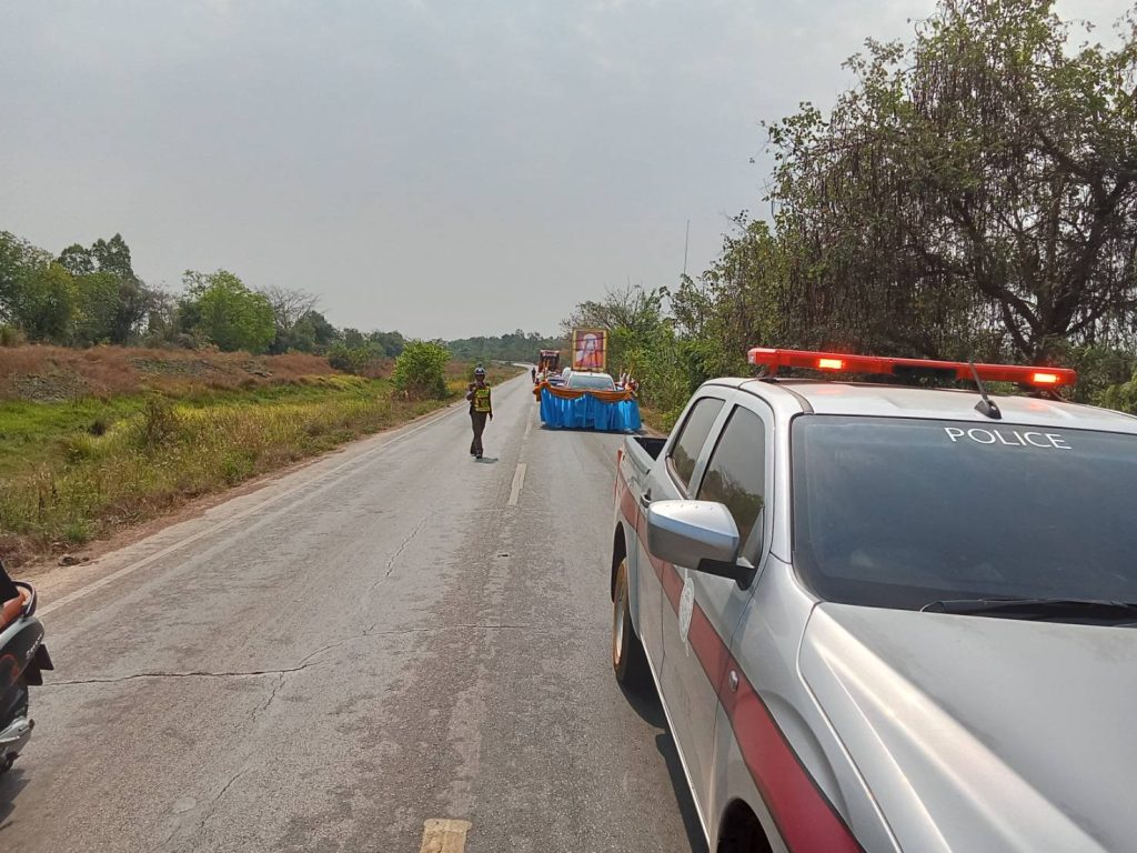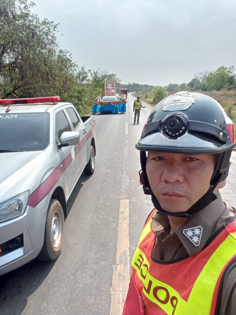 ร.ต.อ.ชัยณรงค์ ภูสีเขียว รอง สว.สส.สภ.นากุง ร้อยเวร จราจร สายตรวจจราจร อำนวยการจราจรและนำขบวนแห่ฉลองโฉนด วัดหนองโจด(เทพมงคลวชิรมุนีอนุสรณ์) บ้านนาเชือกใต้ ม.1 ต.นาเชือก อ.ยางตลาด จ.กาฬสินธุ์ โดยมี พระญาณรักขิต (แผน โสภโณ) เจ้าคณะจังหวัดกาฬสินธุ์ พร้อมญาติโยมตำบลนาเชือกร่วมขบวนแห่