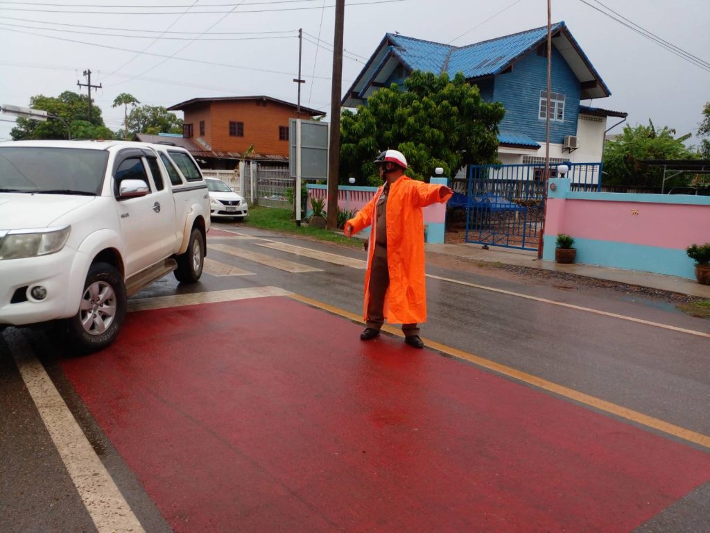 ด.ต.กฤษณะ วงษ์ปัญญา ผบ.หมู่(ป.) สภ.นากุง ปฎิบัติหน้าที่อำนวยความสะดวกด้านการจราจร เสริมสร้างวินัยจราจรและความปลอดภัยให้กับผู้ใช้รถใช้ถนน บริเวณ หน้าโรงเรียนหนองกุงราษฏร์วิทยา ต.เขาพระนอน อ.ยางตลาด จ.กาฬสินธุ์