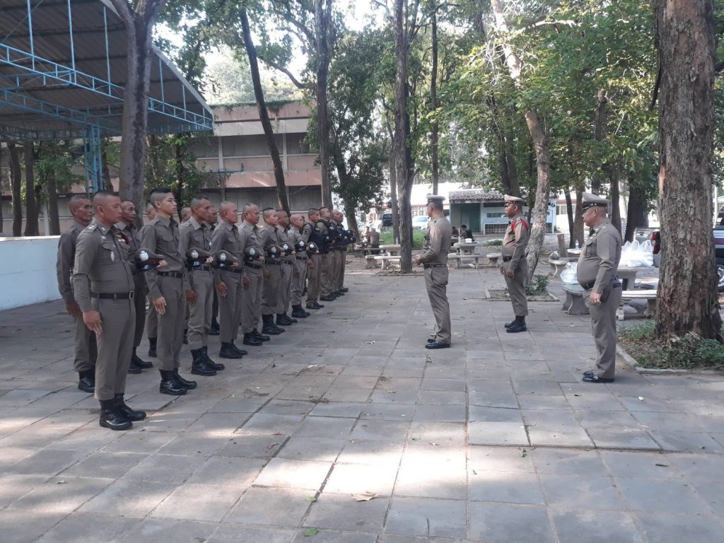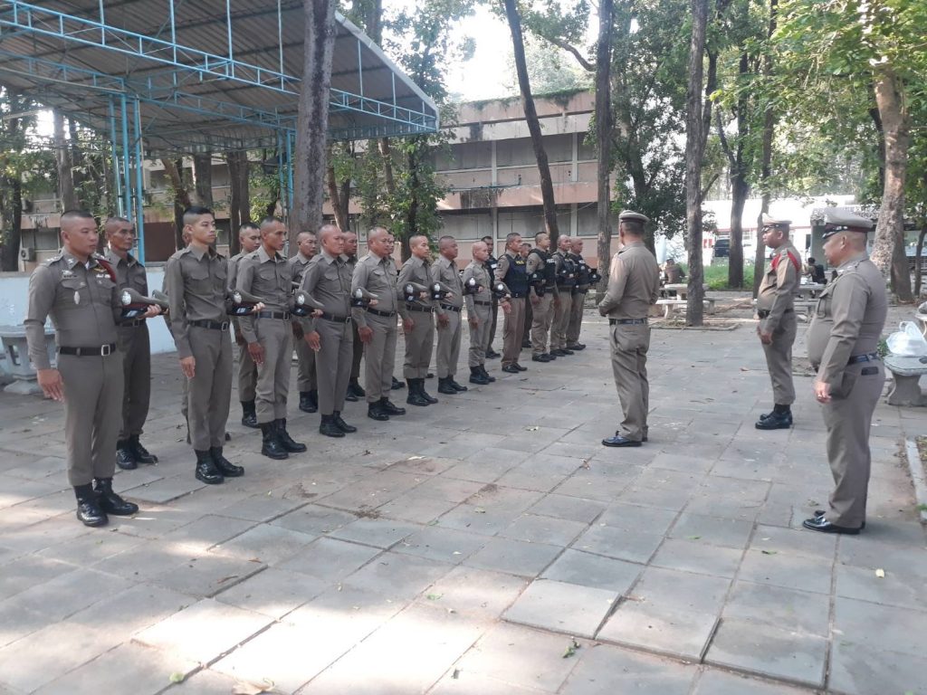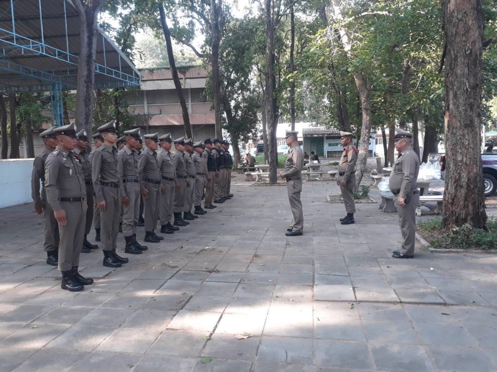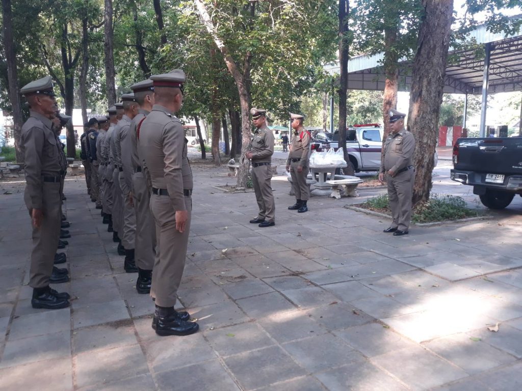 เรียกแถวข้าราชการตำรวจ สภ.นากุงเพื่อตรวจจำนวนเตรียมความพร้อมอุปกรณ์พร้อมมอบนโยบายสร้างขวัญกำลังใจ