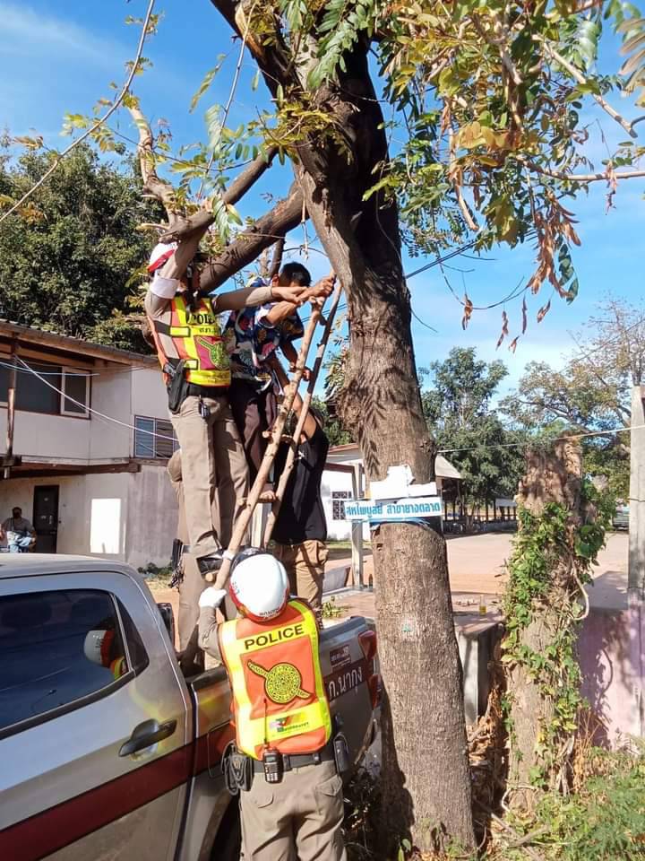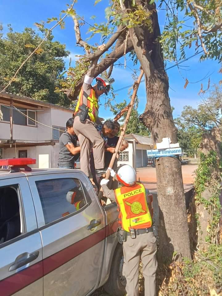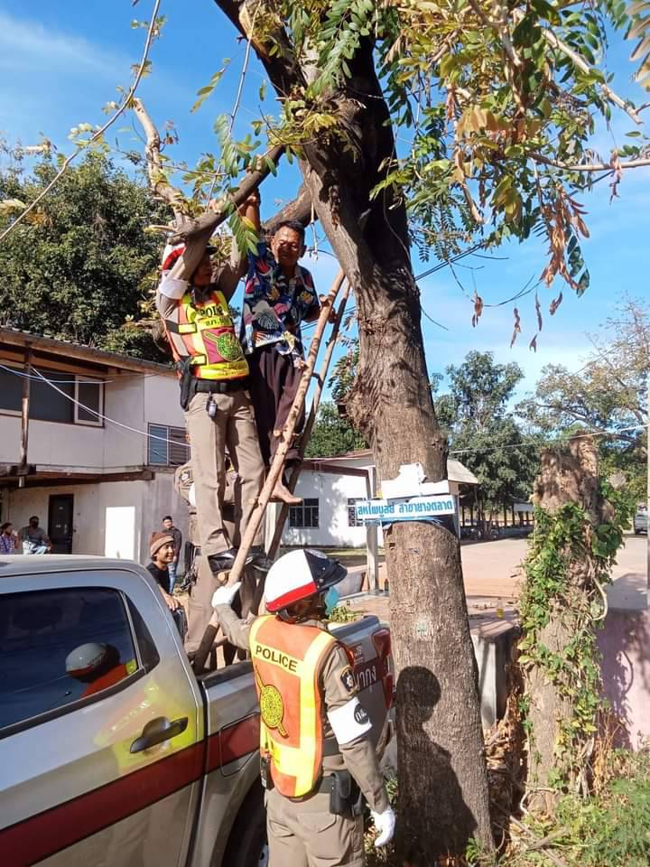 ร.ต.อ.ชัยณรงค์ ภูสีเขียว รอง สว.สส.สภ.นากุง ปฏิบัติหน้าที่ร้อยเวรจราจร พร้อมด้วยชุดจราจร ว.4 ว.10 ตลาดบ้านโคกใหญ่ รับแจ้งเหตุชายสูงวัยเมาสุรา ขึ้นต้นไม้ไม่สามารถลงเองได้ ขอความช่วยเหลือ จึงได้ทำการช่วยเหลือแและประสานทางกู้ภัยเทศบาลบัวบาน นำส่งบ้านโดยปลอดภัย