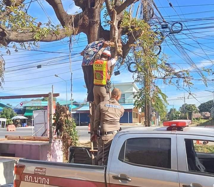ร.ต.อ.ชัยณรงค์ ภูสีเขียว รอง สว.สส.สภ.นากุง ปฏิบัติหน้าที่ร้อยเวรจราจร พร้อมด้วยชุดจราจร ว.4 ว.10 ตลาดบ้านโคกใหญ่ รับแจ้งเหตุชายสูงวัยเมาสุรา ขึ้นต้นไม้ไม่สามารถลงเองได้ ขอความช่วยเหลือ จึงได้ทำการช่วยเหลือแและประสานทางกู้ภัยเทศบาลบัวบาน นำส่งบ้านโดยปลอดภัย
