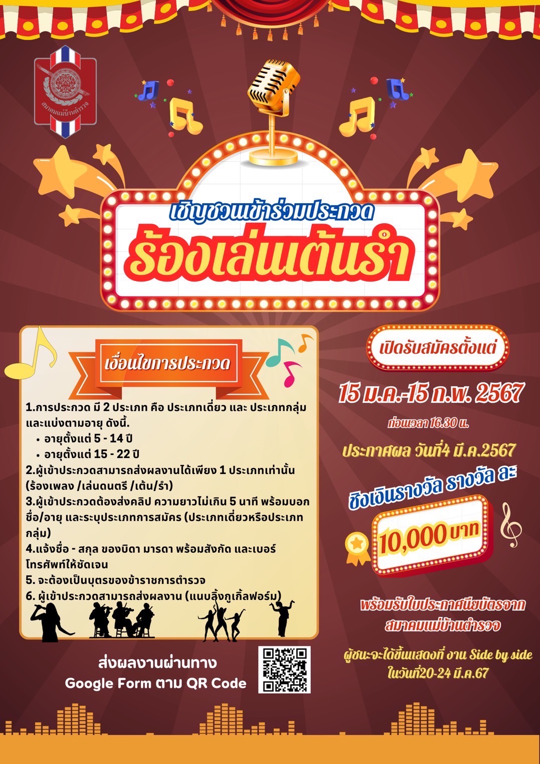 สภ.นากุง ขอฝากเรียนประชาสัมพันธ์สมาคมแม่บ้านตำรวจ ขอเชิญชวนร่วมกิจกรรมการประกวด “ร้อง เล่น เต้