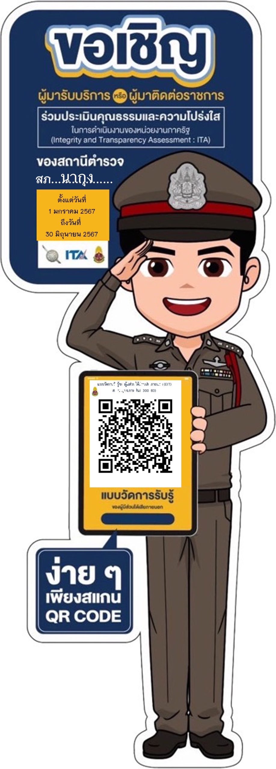 เชิญร่วมประเมินแบบวัดการรับรู้ผู้มีส่วนได้ส่วนเสียภายนอก ปี 2568 สถานีตำรวจภูธรนากุง จังหวัดกาฬสินธุ