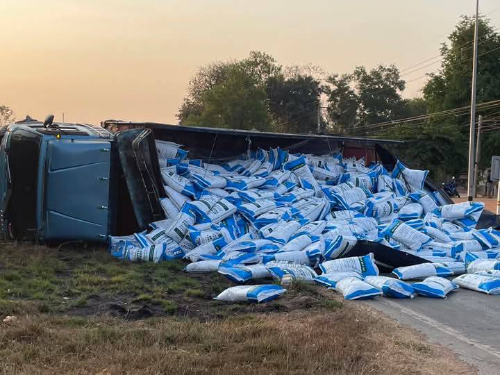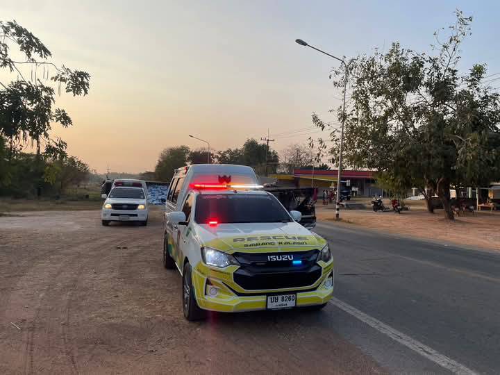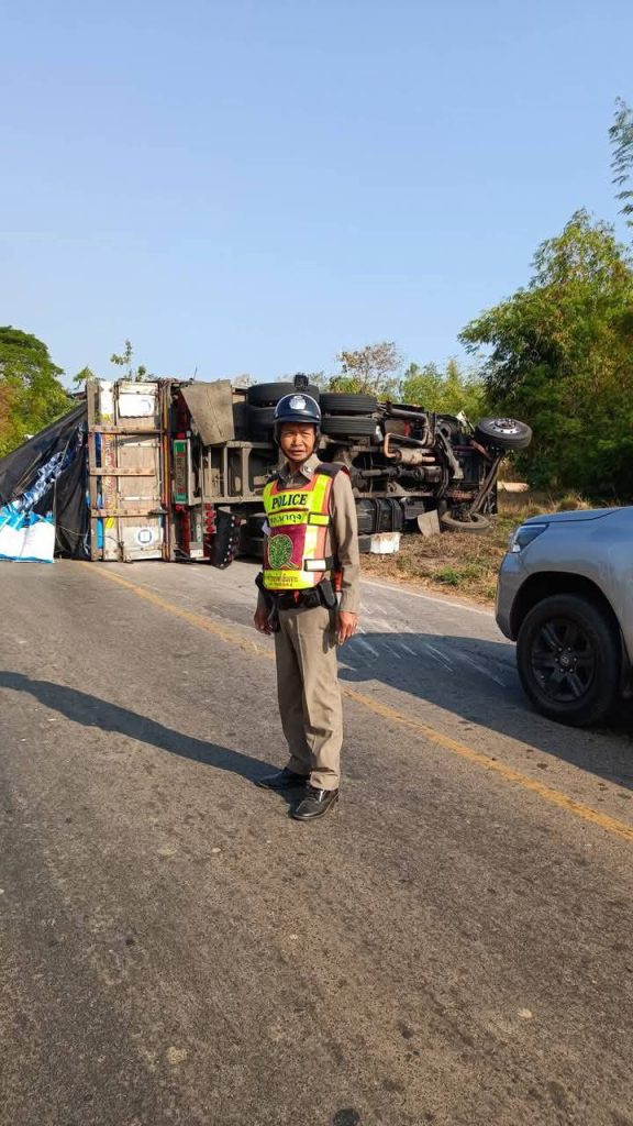 พร้อมชุดจราจร อำนวยความสะดวกการจราจรเหตุ รถบรรทุกเฉี่ยวชนกับรถยนต์กระบะโตโยต้าบริเวณหน้าวัดหนองจอก บ.นาเชือกใต้ ม.7 ต.นาเชือก อ.ยางตลาดมีผู้บาดเจ็บกู้ภัยนาเชือก